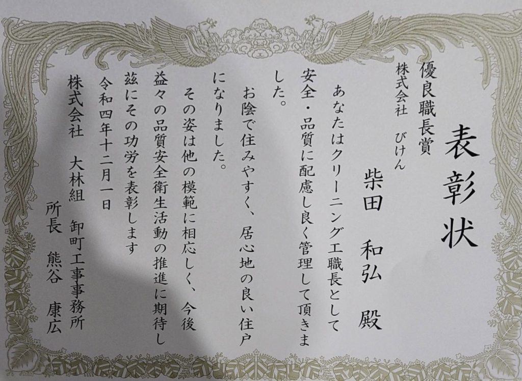 優良職長賞を受賞しました!